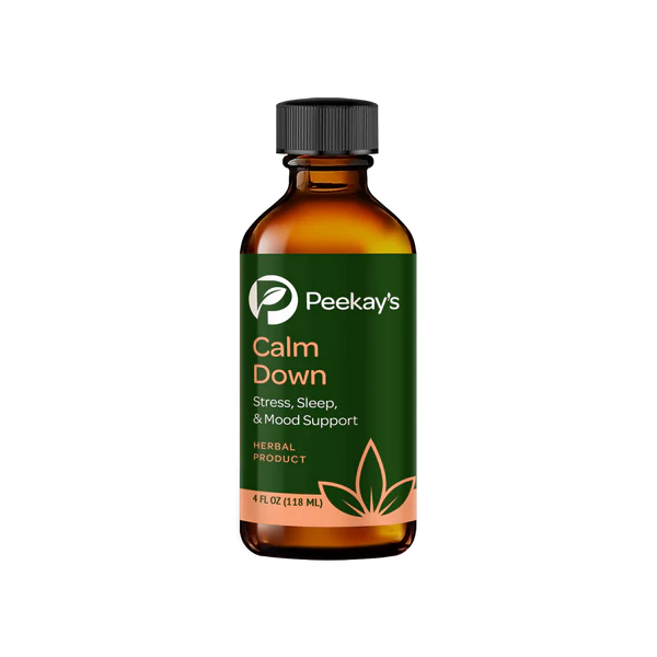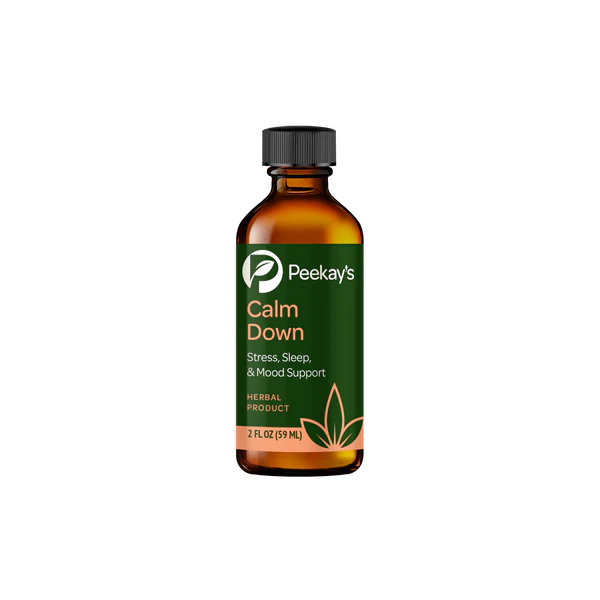 Peekay’s Calm Down is for people with anxiety, panic attacks, high stress, irritability, insomnia, muscle tension, ungrounded feelings, raw emotions, side effects of tapering off pain, sleep & anxiety medications, painful periods, PMS etc.*