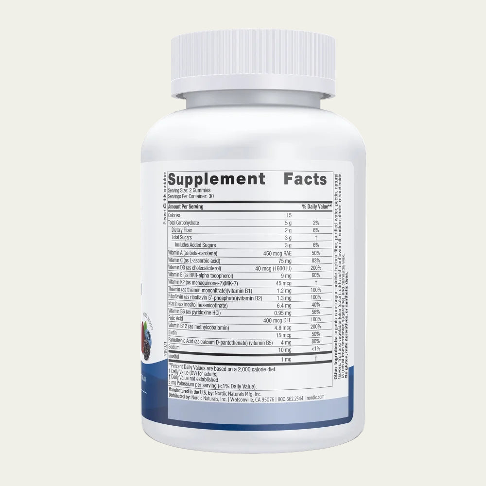 For adults, two gummies daily, with food, or as directed by your health care professional.