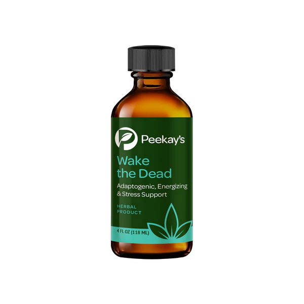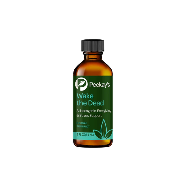 Peekay’s Wake The Dead is intended to boost, nourish and stimulate your energy without the jittery, scattered and crashing effects commonly experienced with other stimulants like coffee, tea, sugar and drugs. The functional class of these herbs are known as adaptogens. Adaptogens can help the body and mind cope with stressful circumstances. Adaptogens support physical endurance, emotional endurance & mental endurance. Adaptogens are known to have biphasic or two directions of activity. Each adaptogenic herb has the capacity to not only increase energy and uplift but also to calm and ground our energy. Some of the individual adaptogens lean more towards the stimulating end of the spectrum and others lean more towards the nourishing and grounding end of the spectrum. Dosage makes a difference. Moderate doses tend to deliver the calming, nourishing and stabilizing effects of these herbs, while higher doses tend to produce more of the energizing and stimulating effects of the adaptogenic herbs.*